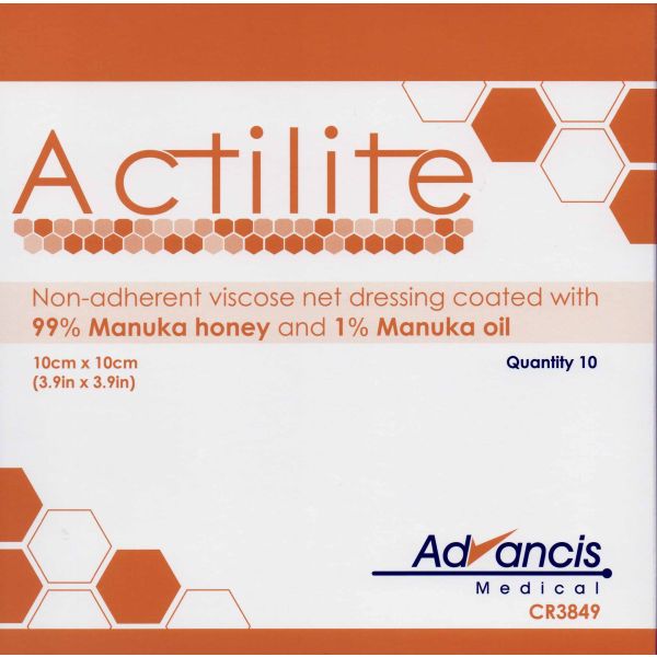 Actilite is a light Non-Adherent viscose net dressing coated with 99% Manuka Honey and 1% Manuka Oil.The addition on Manuka oil enhances the anti-microbial effect .Actilite offers antibacterial protection whilst promoting the ideal moist wound healing environment.It is best suited for granulating or epithelialising wounds.Suitable for cuts, abrasions, burns, surgical wounds, leg ulcers, pressure ulcers, diabetic ulcers and infected wounds.