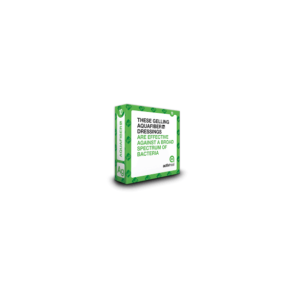 ActivHeal Aquafiber Ag Antimicrobial wound dressing is a sterile, non-woven pad consisting of mannuronic acid, calcium alginate and carboxymethylcellulose.Silver ions are released in the presence of wound fluid and are an effective antimicrobial agent for up to 7 days. As fluid is absorbed, the alginate forms a soft gel which assists in maintaining a moist environment for optimum wound healing and allows intact removal. ActivHeal Aquafiber Ag Antimicrobial wound dressing is indicated for moderately to heavily exuding wounds.
