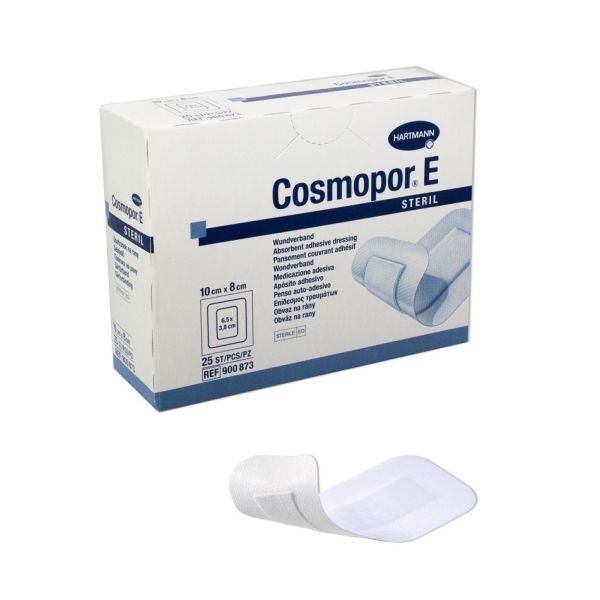 Cosmopor® E is a sterile, adhesive wound dressing made of a soft non-woven polyester, with an absorbent viscose pad which provides high absorbency and cushioning.It is deal for the treatment of post-operative wounds and minor injuries.