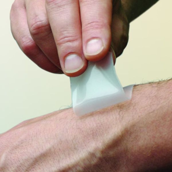 Made from silicone and polytetrafluoroethylene, the thin Dermatix Silicone Sheet Clear provides a unique combination of transparency, flexibility and adhesiveness. The silicone reduces hypertrophic scars and keloids. Dermatix Silicone Sheet Clear does not require adhesive aids such as tape or netting, making Dermatix Silicone Sheets ideal for wearing on exposed body parts (e.g. face and hands). Dermatix Silicone Sheet Clear can be washed with mild soap and water, making Dermatix Silicone Sheets easy to reuse.