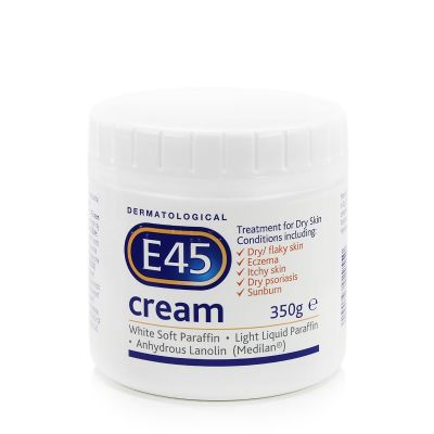 E45 is a non-greasy emollient that has been clinically proven to treat and soothe dry, itching, flaking, chapped, rough and calloused skin, sunburn and detergent hands. E45 Cream is also recommended for dry skin conditions such as eczema and dermatitis. Effective and pleasant to use, it can be used everyday by the whole family including babies.