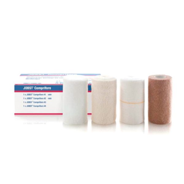 JOBST Comprifore multi-layer bandage kit contains all the components needed for adequate compression in the treatment of venous leg ulcers, providing sustained, graduated compression of 40mmHg. Also available as Latex-Free to reduce risk of allergic reactions.