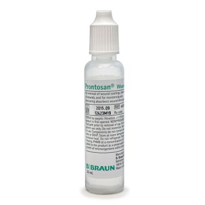 Prontosan solution and gels contain 2 active ingredients, an antimicrobial polyhexanide (polyhexamethylene biguanide [PHMB]), and a betaine surfactant (undecylenamidopropyl betaine). It is indicated for cleansing, rinsing and moistening acute and chronic wounds and to prevent and remove biofilms.Prontosan solution can be used for irrigation, or applied to gauze as a soak. The gels are applied to the wound bed during dressing changes after cleansing.