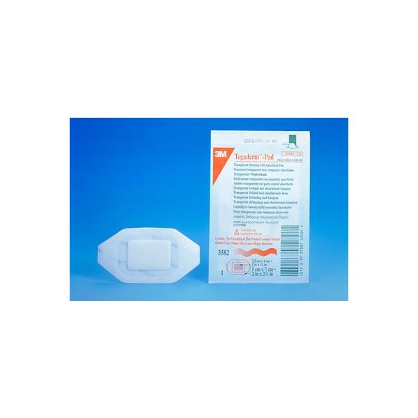 Tegaderm + Pad dressing is a Waterproof, adhesive, transparent film dressing with an absorbant pad.