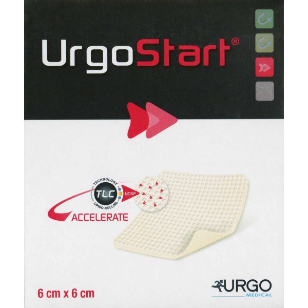 Urgostart® is a Foam dressing composed of a soft adherent TLC-NOSF layer combine with an absorbant Polyurethane foam pad and an outer vapour permeable film.Upon contact with wound exudate it forms a gel creating a moist healing environment. TLC-NOSF prevent the action of Matrix Metalloproteases ( MMP's ) thereby promoting faster wound healing