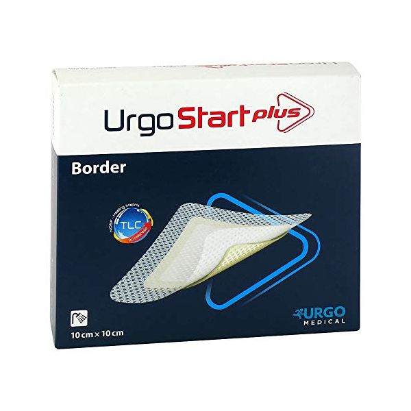 Urgostart Plus Border Dressing consists of a polyabsorbant fibre pad containing a Protease inhibitor ( TLC-NOSF Healing Matrix ) and a silicone border with a waterproof backing. The Polyabsorbant fibres trap, bind and retain exudate whilst the TLC-NOSF Healing Matrix inhibits excess metalloproteinases and promotes the formation of new blood vessels.Urgostart Plus reduces healing time and improves patients quality of life.Urgostart Plus dressings are suitable for all stages from desloughing to complete healing of exuding wounds including leg ulcers, pressure ulcers, diabetic foot ulcers and chronic acute wounds.