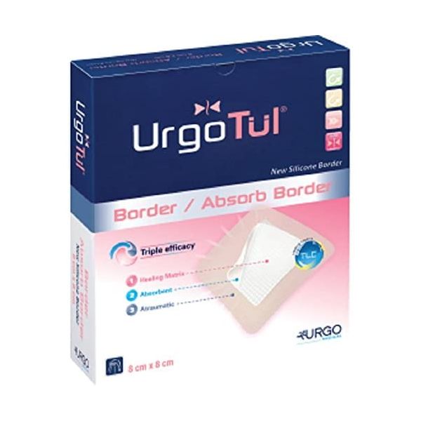 UrgoTul® Absorb Border is an absorbent foam dressing with a silicone adhesive border and a waterproof backing. It is based on the patented TLC (Technology Lipido-Colloid). Suitable for the treatment of low to moderately exuding wounds, minor burns, Leg ulcers, Pressure ulcers and Post-operative wounds.