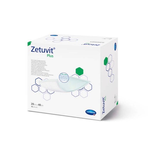 Zetuvit Plus Silicone Dressings 20cm x 25cm comprises of of a Superabsorbant fluid retaining layer together with a silicone wound contact layer and a water repellent outer layer. The Superabsorbant layer can retain exudate even under compression dressings. The Silicone Wound contact layer makes dressing changes atraumatic.